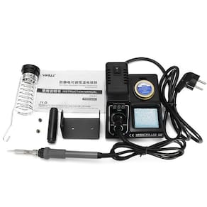 Inclui: 1 x Estação de solda. 1 suporte do fio de estanho. 1 suporte ferro 1 limpador de ponteira