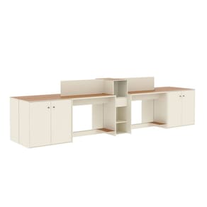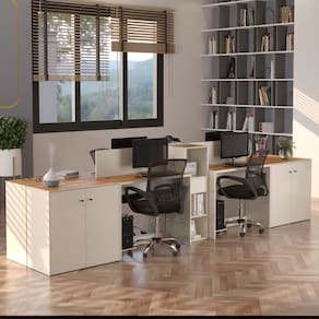 Estação de Trabalho 4 Lugares Office Smart 4 Mesas 2 Armários 4 Aparador - Off White