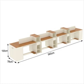 - Conteúdo da Embalagem:8 Escrivaninha,6 Armario Livreiro e 2 Buffet Aparador (Alem de 2 kits de divisorias) - Entregue em:18 Volumes.