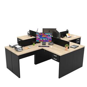 Invista no seu bem-estar e na sua equipe com a Ilha em L com gaveta da Linha Office Netmobil!