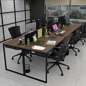 Invista no bem-estar da sua equipe com a estação de trabalho estilo industrial de 6 lugares com gavetas da Linha de Estações de Trabalho da Netmobil.