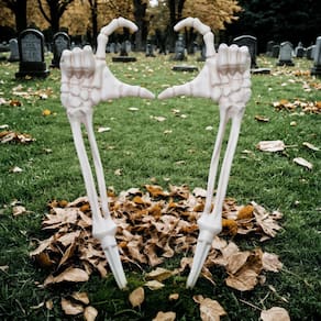 Este conjunto exclusivo apresenta mãos esqueléticas esquerdas e direitas dispostas em uma pose de amor, criando uma exibição cativante que é perfeita para seu quintal ou jardim.