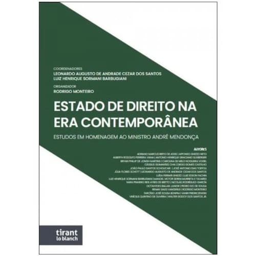 "A presente obra intitulada ?Estado de Direito na era Contemporânea: estu- dos em homenagem ao Ministro André Mendonça" é uma merecida home- nagem, por meio de um conjunto de artigos científicos, de juristas e acadê- micos renomados e destacados no meio jurídico, ao Ministro André Luiz de Almeida Mendonça em deferência ao seu ingresso e trajetória nos quadros do Supremo Tribunal Federal. Os ilustres juristas, cada um em sua área de conhecimento específico, apre- sentaram diversos trabalhos comentando e debatendo temas complexos do direito constitucional entrelaçados com outros ramos do Direito em voga na atualidade. Nossa Corte Constitucional, com a presença do Ministro André Luiz de Al- meida Mendonça, julgou assuntos relevantes para a nação brasileira, moti- vo pelo qual parte dos renomados colaboradores com seus estudos nessa coletânea se debruçaram sobre essas decisões enquanto outros imbuídos de um espírito democrático aportaram suas considerações sobre temas de índole constitucional em respeito à liberdade de opinião própria dos estu- dos da Academia. (...) Agradecemos a todos os autores que enviaram os seus artigos científicos para compor esta obra de envergadura invejável pela presença de tantas autoridades e pesquisadores gabaritados e, ao mesmo tempo, admirado- res e amigos do Ministro André Mendonça, ao congratular a sua carreira como humanista e eminente Ministro do Supremo Tribunal Federal. Permanecemos na esperança de que os leitores apreciem o material com- pilado e propaguem o conhecimento das diversas linhas insculpidas nas páginas desta obra memorável. Boa leitura a todos!" Marca: TIRANT DO BRASIL