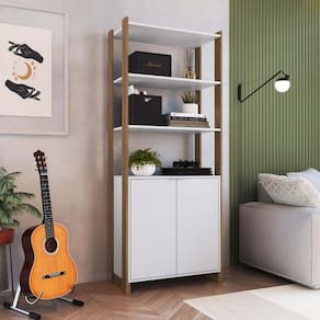 Estantante Armário Multiuso 2 portas e 4 prateleiras Nova Mobile Mel Branco