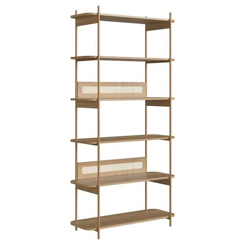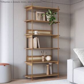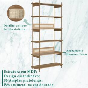 Estante 180 CM 6 Prateleiras Pes Metal Oslo 28965, minimalista, elegante e multifuncional, elaborada para preencher com excelência desde os mais requintados ambientes, quanto aqueles que optam pela sobriedade dos traços artesanais. Estrutura em MDP de 15 mm com acabamento BP e metal. Possui aplique de tela sintética (PVC e poliéster), agregando nobreza ao seu design. Seus pés são confeccionados em tubo metálico em aço e acabamento em pintura epóxi dourada com ponteiras plásticas, evitando atrito no piso. Capacidade de peso suportada: 30 Kg distribuídos, 05 Kg cada prateleira. Com seus traços suaves e paleta de cores acolhedora, ela irá conferir sofisticação e aconchego ao seu ambiente. Este móvel chegará na sua casa separado em 01 volumes.