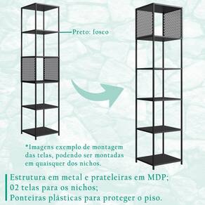 MDPEstante 180 Cm Estilo Industrial Com Tela P1023, conta com estilo industrial que além de atemporal, combina com qualquer tipo de decoração, sinônimo de versatilidade! Tanto sua estrutura em metal, quanto suas prateleiras em MDP, possuem 15 mm de espessura, conta com 05 prateleiras e 02 telas em aço, podendo ser instaladas em lugares distintos da estante, permitindo a personalização da mesma de acordo com seu gosto e/ou necessidade. Sua base possui ponteiras plásticas, evitando riscos no chão de seu cômodo. É o móvel perfeito para você que busca praticidade ao guardar seus itens, aliado à modernidade de um produto conceitual. Este móvel chegará na sua casa separado em 01 volume.