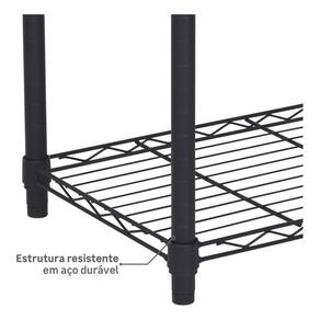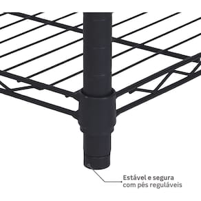 Com um design moderno e minimalista, esta estante de metal em aco preto aramado, no tamanho de 90x60x35cm, adiciona um toque de sofisticacao e organizacao a qualquer ambiente. Sua estrutura vazada aramada confere leveza visual, enquanto a cor preta a torna versatil para combinar com diversos estilos de decoracao, desde o industrial ate o contemporaneo. As linhas retas e a ausencia de detalhes excessivos garantem uma peca elegante e funcional.
