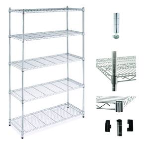 ESTANTE ORGANIZADORA, COM PRATELEIRAS DO TIPO COMERCIAL ARAMADA. MODELO COM 5 PRATELEIRAS E RODÍZIO.