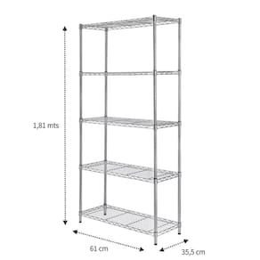 ESTANTE ORGANIZADORA, COM PRATELEIRAS DO TIPO COMERCIAL ARAMADA. MODELO COM 5 PRATELEIRAS COM RODÍZIO.