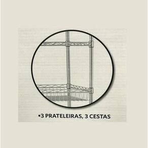 Contem 3 prateleiras e 3 cestas - 6 prateleiras no total - 4 rodas fortes 2 com travas