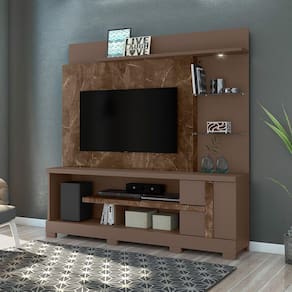 Estante Alan para TV de até 55 polegadas COM PÉ - IMPERIAL / SÉPIA - Madetec Procurando uma estante para a sua sala de TV. Aqui voce encontra os o HHome Theater Alan da Madetec, projetado para acomodar televisor de até 55 polegadas tem como diferenciais: O Painéis em MDP de 15 e 40mm com pintura UV, portas com dobradiças metálicas, prateleiras de vidro 5mm para objetos decorativos, luminária de LED e sistema de fixação com girofix. Dimensões do produto Montado: Largura: 181 cm Altura: 180 cm Profundidade: 39 cm Características:Material produto: MDPRevestimento: Pintura UVPossui 1 PortasDobradiças metálicasPossui 2 prateleiras com vidroMini Sapata PlásticaPossui pésEntrada TV Largura 136 cm Altura 99 cm Profundidade 26 cm para 55 polegadasSistema de montagem: GirofixPeso total suportado: 50 kgPeso do produto: 71,20 KgQuantidade de Volumes: 02 Garantia: 3 meses Montagem: Recomendamos que a montagem seja feita por um profissional. Recomendação de Limpeza: Utilize pano levemente úmido. Observações: - Nos responsabilizamos pela entrega dos produtos até onde as rodovias alcançam, entregas fluviais ou aéreas devem ser cotadas a parte - As imagens são ilustrativas, não acompanham objetos de decoração - A montagem será de responsabilidade do comprador. Não nos responsabilizamos, no ato da entrega, por subir escadas/elevadores ou transporte por guincho em apartamentos. Eventuais despesas são de responsabilidade do comprador. - Confira as dimensões do produto e certifique-se de que passará normalmente por supostos elevadores, portas, escadas e/ou corredores de sua residência.