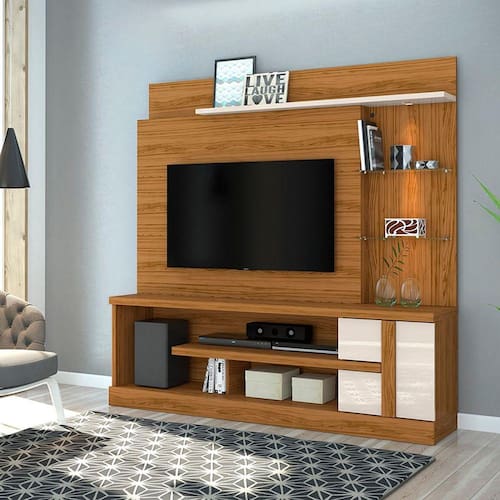 Estante Alan para TV de até 55 polegadas - NATURALE/ OFF WHITE - Madetec Procurando uma estante para a sua sala de TV. Aqui voce encontra os o HHome Theater Alan da Madetec, projetado para acomodar televisor de até 55 polegadas tem como diferenciais: O Painéis em MDP de 15 e 40mm com pintura UV, portas com dobradiças metálicas, prateleiras de vidro 5mm para objetos decorativos, luminária de LED e sistema de fixação com girofix. Dimensões do produto Montado: Largura: 181 cm Altura: 180 cm Profundidade: 39 cm Características:Material produto: MDPRevestimento: Pintura UVPossui 1 PortasDobradiças metálicasPossui 2 prateleiras com vidroMini Sapata PlásticaPossui pésEntrada TV Largura 136 cm Altura 99 cm Profundidade 26 cm para 55 polegadasSistema de montagem: GirofixPeso total suportado: 50 kgPeso do produto: 71,20 KgQuantidade de Volumes: 02 Garantia: 3 meses Montagem: Recomendamos que a montagem seja feita por um profissional. Recomendação de Limpeza: Utilize pano levemente úmido. Observações: - Nos responsabilizamos pela entrega dos produtos até onde as rodovias alcançam, entregas fluviais ou aéreas devem ser cotadas a parte - As imagens são ilustrativas, não acompanham objetos de decoração - A montagem será de responsabilidade do comprador. Não nos responsabilizamos, no ato da entrega, por subir escadas/elevadores ou transporte por guincho em apartamentos. Eventuais despesas são de responsabilidade do comprador. - Confira as dimensões do produto e certifique-se de que passará normalmente por supostos elevadores, portas, escadas e/ou corredores de sua residência.