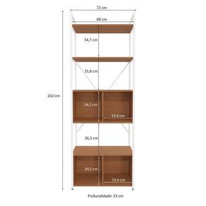 Organização e otimização com a Estante Alta com Portas LI018 da Linha Industrial Kappesberg. Medindo 2,02m de altura, 72cm de largura e 33cm de profundidade, combina desde a sala de estar, o quarto, escritório, área de lazer e até a garagem. Sua estrutura metálica é resistente, e pintada com tinta epóxi na cor branco brilho, garante maior durabilidade contra a umidade e um acabamento lindo. Os nichos, portas e prateleiras, em MDP de 15cm e acabamento touch na cor canela, com a textura dos veios da madeira, garantem amplo espaço para organizar livros, documentos, plantas, roupas, decorações e outros objetos. Seu reforço em X nas costas garante mais resistência, além de ser fácil de montar e ajustável em todos os pisos com as sapatas reguláveis. Acabamento da Porta: Pintura UV Acabamento da Prateleira: Pintura UV Acabamento dos Pés: Pintura Altura dos Pés: 0,1 cm codigo_ean: 7900288245526 Complexidade da Montagem: Média: pode ser montado por mais de uma pessoa e/ou necessite de maior conhecimento para montagem Cor: Canela/Branco Brilho Cor do Produto: Canela/Branco Brilho Escala de Brilho: Semi-Brilho Escala de Brilho da Porta: Fosco Escala de Brilho da Prateleira: Fosco Itens Inclusos: 1 Estante, Manual de Montagem e Kit Ferragens Manual de Montagem e Instalação: https://cdn2.madeiramadeira.com.br/atributo/kappesberg-crome/3243761-5445-1759146188905.pdf Marca: Kappesberg Material da Porta: MDP Material da Prateleira: MDP Material do Puxador da Porta: Metal Material dos Pés: Polipropileno Material Principal: Aço Necessita Montagem: Sim Origem do Produto: Nacional Peso: 33,8691 kg Peso Máximo por Prateleira: 7 kg Possui Acabamento na Parte de Trás: Sim Possui iluminação: Não Possui Pés: 04 Possui Portas: 04 Possui Prateleiras: 06 Quantidade de Nichos: 04 Recomendações de Uso, Manutenção e Limpeza: Limpeza com pano macio levemente umedecido. Não utilizar produtos abrasivos. Sapatas Niveladoras: Não Sistema de Montagem: Parafuso Philips Suporta Até (kg): 30 kg Tipo de Dobradiça/Corrediça da Porta: Metálica Tipo de Puxador da Porta: Externo