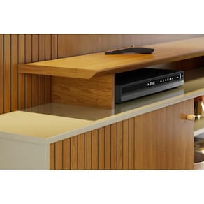 O Home Theater Ares, da marca Madetec, é ideal para TVs de até 75 polegadas. Produzido em MDP e MDF com revestimento em pintura UV, conta com 1 porta deslizante em MDF frisado, 2 prateleiras e puxador dourado pontual.