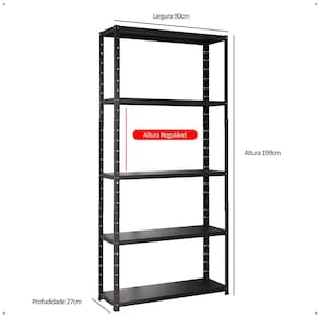 Conta com 5 prateleiras ajustáveis em altura, oferecendo a flexibilidade necessária para acomodar itens de diferentes tamanhos e formatos.
