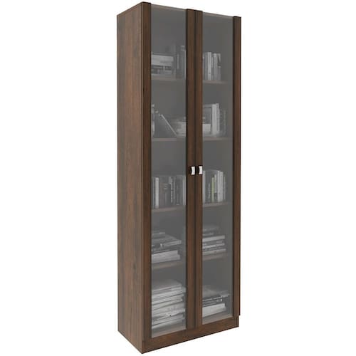 Estante Armário Alta Livreiro Multiuso Office 2 Portas Vidro - Marrom