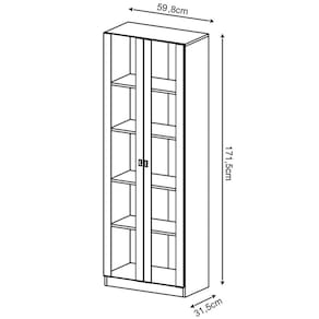 Dimensões da Estante Armário Alta Livreiro Multiuso Office 2 Portas Vidro: