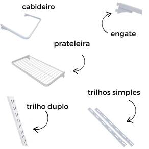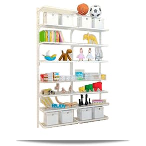 Este modelo é multiuso, muito adequado para quarto de crianças, bebê, quartinho da bagunça. O trilho graduado contribui para o fácil deslocamento das prateleiras desalinhando-as conforme a necessidade de se acomodar as coisas.