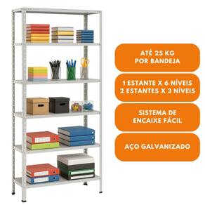 Produto de fácil montagem, com a simples colocação de porcas e parafusos unindo as bandejas às colunas. Perfeita para escritórios, papelarias, escolas, estoques de loja ou até mesmo ambientes residências.
