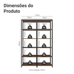 - Duas estantes multiuso com cinco prateleiras em cada