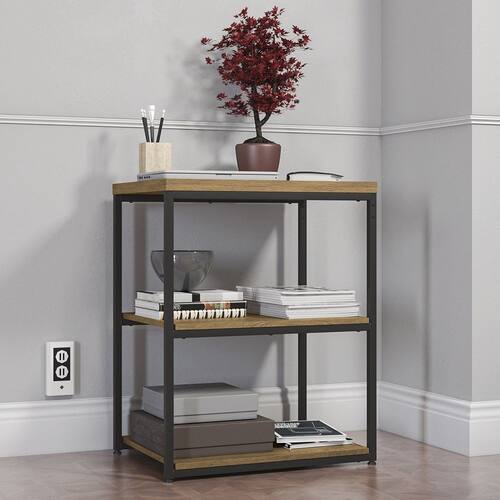Mesa de apoio de madeira Freijo/Preto fosco A nova linha de escritórios vai levar novidades para o seu espaço de trabalho. Conta com 2 prateleiras produzidas em MDP e é perfeita para decorar e organizar seus objetos, ideal para os amantes dessa tendência que mistura o rústico ao urbano, dando ainda mais personalidade ao seu espaço. As laterais da estante são fabricadas em Metal. Para um ambiente moderno é necessário escolher móveis arrojados, únicos, que irão impressionar logo à primeira vista.