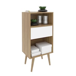 Estante Baixa com 1 Gaveta Amêndoa/Off White -