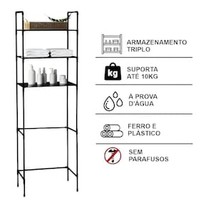 Estante Para Banheiro Multiuso Prateleira 3 Níveis Organizador Estante para Banheiro Multiuso - 3 Níveis