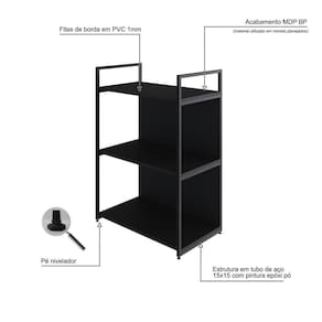 Estante C/03 Prateleiras 84x60x33cm C/fundo Yon Preto Tx/ Preto Tx/