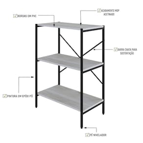 Sobre o ProdutoEstante C/03 Prateleiras 84x60x33cm Tub TUEH863 Branco Chess - Est.PretaDescrição do Produto:A Estante Tub TUEH863 combina o estilo industrial contemporâneo com funcionalidade. Feita com estrutura tubular de aço com pintura epóxi, garante durabilidade e resistência, enquanto as prateleiras em MDP acetinado com bordas em PVC oferecem maior proteção e fácil manutenção. O design inclui barras chatas em formato X para maior sustentação e estabilidade, além de pés niveladores que asseguram o perfeito ajuste em qualquer superfície. A estante Tub é ideal para organizar e decorar diversos ambientes, como salas, escritórios ou áreas de linha Tub apresenta móveis contemporâneos com um toque de estilo industrial, ideais para sala, home office, cozinha ou área de lazer. Com estrutura em tubos de aço robustos e acabamento em pintura epóxi, cada peça oferece durabilidade e resistência. O MDP Perffect com tecnologia Microban garante proteção contra fungos e bactérias, enquanto as fitas em PVC asseguram um acabamento superior. Essa coleção é a combinação perfeita entre funcionalidade e design moderno para seu Inclusos:1 EstanteDimensões dos Produtos:Estante C/03 Prateleiras 84x60x33cm Tub TUEH863 Branco Chess - 60 x 33 x 84 cmInformações Logísticas (Comp. X Prof. X Alt.) 83,5 x 34,5 x 8,5 cm - Peso: 7,9981 KgPeso Total: 7,9981 KgObservações:Não acompanha acessórios decorativos. Imagens meramente ilustrativas.Informações Técnicas / Características:- Cor do Produto: Branco Chess - Cor do Predominante: Branco- Marca: Compace- Modelo: TUEH863- Linha: Tub- Material: Mdp- Material da Estrutura / Pés: Aço- Acabamento: Perffect Acetinado- Escala de Brilho: Fosco- Fita de Borda: Pvc - Possui Prateleiras: 3- Peso Máximo por Prateleira: 10kg- Possui Pés: 2- Pés Niveladores: Sim - Acabamento Estrutura: Epóxi-Pó- Formato: Retangular - Suporta Até (kg): 30kg- Comprimento: 60cm- Profundidade: 33cm- Altura: 84cm - Peso Lí.: 7,411Kg- Recomendações de Uso, Manutenção e Limpeza: Para a limpeza, utilize flanela seca ou pano macio levemente umedecido em água. Utilize um pano seco em seguida. Evite com produtos químicos (solventes, thinner, acetona, etc) e não utilize nenhum tipo de esponja de aço.- Necessita de Montagem: Sim / Acompanha Manual de Montagem- Complexidade da Montagem: Média: pode ser montado por mais de uma pessoa e/ou necessite de maior conhecimento para montagem.- Garantia: 6 meses Tipo de Garantia: Garantia do Fabricante | Duração de Garantia: 6 Meses | Montagem: Necessita Montagem | Material: Madeira,Metal | País de Origem: | Comprimento: 60 | Altura: 84 | Largura: 33 | Profundidade: 33 | Tonalidade: Multicolorido | Cor: Multicolorido | Produto: Estante | Marca: Compace | Coleção: Industrial | Requer Baterias: Não | Certificação Externa: Não aplicável | Componentes inclusos: Manual de montagem e kit acessórios | Peso: 7,41 | Preço de tabela: 198.89599999999999 | Fabricante: Compace | do Modelo: TUEH863 | de Caixas: 1 | de Itens: 1 | da Peça: TUEH863 | Cômodo indicado: Escritórios | Material da Estrutura: Aço | Quantidade de itens: 1 | Principais Características do Produto 0: Aço | Palavras-chave de Pesquisa: Não Aplicável | Principais Características do Produto 1: MDP | Principais Características do Produto 2: Pvc | Exige montagem: true | Peso do item: unit=kilograms; | Dimensões do item P x L x A: depth#value=33;width#value=60;depth#unit=centimeters;width#unit=centimeters;height#value=84;height#unit=centimeters Cor: Snow /