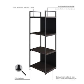 Sobre o ProdutoEstante C/04 Prateleiras 118x45x33cm C/Fundo Yon YOEO1144F çoDescrição do Produto:A estante Yon YOEO1144F combina elegância e funcionalidade, perfeita para ambientes modernos e com estilo. Sua estrutura em tubos de aço com soldas a laser garante robustez e durabilidade, além de um excelente acabamento. Com design de linhas limpas e atemporal, oferece versatilidade para diversos usos, permitindo a criação de composições únicas e personalizadas, perfeita para organizar e exibir objetos decorativos com sofisticação e linha Yon é uma fusão elegante entre o estilo industrial e o contemporâneo. Com linhas limpas, materiais robustos e detalhes sofisticados, essa coleção é perfeita para quem busca um ambiente moderno e funcional. Os móveis desta linha oferecem uma versatilidade notável, adaptando-se a diversos ambientes e necessidades, permitindo a criação de composições únicas e personalizadas. sendo a escolha ideal para quem busca qualidade e estilo em um só Inclusos:1 EstanteDimensões dos Produtos:Estante C/04 Prateleiras 118x45x33cm C/Fundo Yon YOEO1144F ço: 45 x 33 x 118 cmInformações Logísticas (Comp. X Prof. X Alt.) 117,5 x 34,5 x 8,5 cm - Peso: 9,277 KgPeso Total: 9,277 KgObservações:Não acompanha acessórios decorativos. Imagens meramente ilustrativas.Informações Técnicas / Características:- Cor do Produto: ço- Cor do Predominante: Revestido- Marca: Metalig- Modelo: YOEO1144F- Linha: Yon- Material: Mdp- Material da Estrutura / Pés: Aço- Acabamento: BP- Escala de Brilho: Fosco- Fita de Borda: Pvc - Possui Prateleiras: 4- Peso Máximo por Prateleira: 10kg- Possui Pés: 2- Pés Niveladores: Sim - Acabamento Estrutura: Epóxi-Pó- Formato: Retangular - Suporta Até (kg): 40kg- Comprimento: 45cm- Profundidade: 33cm- Altura: 118cm - Peso Lí.: 8,63Kg- Recomendações de Uso, Manutenção e Limpeza: Para a limpeza, utilize flanela seca ou pano macio levemente umedecido em água. Utilize um pano seco em seguida. Evite com produtos químicos (solventes, thinner, acetona, etc) e não utilize nenhum tipo de esponja de aço.- Necessita de Montagem: Sim / Acompanha Manual de Montagem- Complexidade da Montagem: Média: pode ser montado por mais de uma pessoa e/ou necessite de maior conhecimento para montagem.- Garantia: 01 ano Marca: Compace | Modelo: YOEO1144F | Quantidade máxima de pedido: 1 | Necessita montagem: Sim | É em formato de L: Não | Comprimento: 118 cm | Altura: 33 cm | Largura: 45 cm | Profundidade: 45 cm | Material da estrutura: Aço | Produto: Estante | Cômodo indicado: Escritórios | Cor: Multicolorido | Tonalidade: Multicolorido | Coleção: Industrial | Requer Baterias: Não | Certificação Externa: | Componentes inclusos: Manual de montagem e kit acessórios | Preço de tabela: | Fabricante: Compace | do Modelo: YOEO1144F | de Caixas: 1 | de Itens: 1 | da Peça: YOEO1144F | Quantidade de itens: 1 | Principais Características do Produto 0: Aço | Baterias são necessárias?: false | Palavras-chave de Pesquisa: Não Aplicável | Principais Características do Produto 1: MDP | Principais Características do Produto 2: Pvc | Peso do item: unit=kilograms;value=8.6300000000000008 | Dimensões do item P x L x A: depth#value=33;width#value=45;depth#unit=centimeters;width#unit=centimeters;height#value=118;height#unit=centimeters Cor: Terracota/