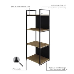 Estante C/04 Prateleiras 118x45x33cm C/fundo Yon Vermont Oak/ Vermont Oak/ Sobre o ProdutoEstante C/04 Prateleiras 118x45x33cm C/Fundo Yon YOEO1144F çoDescrição do Produto:A estante Yon YOEO1144F combina elegância e funcionalidade, perfeita para ambientes modernos e com estilo. Sua estrutura em tubos de aço com soldas a laser garante robustez e durabilidade, além de um excelente acabamento. Com design de linhas limpas e atemporal, oferece versatilidade para diversos usos, permitindo a criação de composições únicas e personalizadas, perfeita para organizar e exibir objetos decorativos com sofisticação e linha Yon é uma fusão elegante entre o estilo industrial e o contemporâneo. Com linhas limpas, materiais robustos e detalhes sofisticados, essa coleção é perfeita para quem busca um ambiente moderno e funcional. Os móveis desta linha oferecem uma versatilidade notável, adaptando-se a diversos ambientes e necessidades, permitindo a criação de composições únicas e personalizadas. sendo a escolha ideal para quem busca qualidade e estilo em um só Inclusos:1 EstanteDimensões dos Produtos:Estante C/04 Prateleiras 118x45x33cm C/Fundo Yon YOEO1144F ço: 45 x 33 x 118 cmInformações Logísticas (Comp. X Prof. X Alt.) 117,5 x 34,5 x 8,5 cm - Peso: 9,277 KgPeso Total: 9,277 KgObservações:Não acompanha acessórios decorativos. Imagens meramente ilustrativas.Informações Técnicas / Características:- Cor do Produto: ço- Cor do Predominante: Revestido- Marca: Metalig- Modelo: YOEO1144F- Linha: Yon- Material: Mdp- Material da Estrutura / Pés: Aço- Acabamento: BP- Escala de Brilho: Fosco- Fita de Borda: Pvc - Possui Prateleiras: 4- Peso Máximo por Prateleira: 10kg- Possui Pés: 2- Pés Niveladores: Sim - Acabamento Estrutura: Epóxi-Pó- Formato: Retangular - Suporta Até (kg): 40kg- Comprimento: 45cm- Profundidade: 33cm- Altura: 118cm - Peso Lí.: 8,63Kg- Recomendações de Uso, Manutenção e Limpeza: Para a limpeza, utilize flanela seca ou pano macio levemente umedecido em água. Utilize um pano seco em seguida. Evite com produtos químicos (solventes, thinner, acetona, etc) e não utilize nenhum tipo de esponja de aço.- Necessita de Montagem: Sim / Acompanha Manual de Montagem- Complexidade da Montagem: Média: pode ser montado por mais de uma pessoa e/ou necessite de maior conhecimento para montagem.- Garantia: 01 ano Marca: Compace | Modelo: YOEO1144F | Quantidade máxima de pedido: 1 | Necessita montagem: Sim | É em formato de L: Não | Comprimento: 118 cm | Altura: 33 cm | Largura: 45 cm | Profundidade: 45 cm | Material da estrutura: Aço | Produto: Estante | Cômodo indicado: Escritórios | Cor: Multicolorido | Tonalidade: Multicolorido | Coleção: Industrial | Requer Baterias: Não | Certificação Externa: | Componentes inclusos: Manual de montagem e kit acessórios | Preço de tabela: | Fabricante: Compace | do Modelo: YOEO1144F | de Caixas: 1 | de Itens: 1 | da Peça: YOEO1144F | Quantidade de itens: 1 | Principais Características do Produto 0: Aço | Baterias são necessárias?: false | Palavras-chave de Pesquisa: Não Aplicável | Principais Características do Produto 1: MDP | Principais Características do Produto 2: Pvc | Peso do item: unit=kilograms;value=8.6300000000000008 | Dimensões do item P x L x A: depth#value=33;width#value=45;depth#unit=centimeters;width#unit=centimeters;height#value=118;height#unit=centimeters Cor: Vermont OAK/
