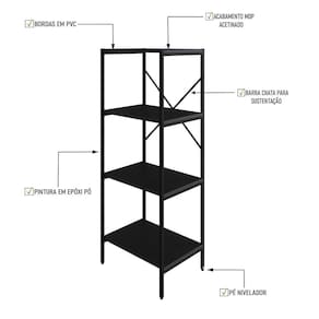 Sobre o ProdutoEstante C/04 Prateleiras 118x45x33cm Tub TUEH1144 Branco Chess - Est.PretaDescrição do Produto:A Estante Tub TUEH1144 combina o estilo industrial contemporâneo com funcionalidade. Feita com estrutura tubular de aço com pintura epóxi, garante durabilidade e resistência, enquanto as prateleiras em MDP acetinado com bordas em PVC oferecem maior proteção e fácil manutenção. O design inclui barras chatas em formato X para maior sustentação e estabilidade, além de pés niveladores que asseguram o perfeito ajuste em qualquer superfície. A estante Tub é ideal para organizar e decorar diversos ambientes, como salas, escritórios ou áreas de lazer.A linha Tub apresenta móveis contemporâneos com um toque de estilo industrial, ideais para sala, home office, cozinha ou área de lazer. Com estrutura em tubos de aço robustos e acabamento em pintura epóxi, cada peça oferece durabilidade e resistência. O MDP Perffect com tecnologia Microban garante proteção contra fungos e bactérias, enquanto as fitas em PVC asseguram um acabamento superior. Essa coleção é a combinação perfeita entre funcionalidade e design moderno para seu ambiente.Itens Inclusos:1 EstanteDimensões dos Produtos:Estante C/04 Prateleiras 118x45x33cm Tub TUEH1144 Branco Chess - Est.Preta: 45 x 33 x 118 cmInformações Logísticas (Comp. X Prof. X Alt.):Vol.01: 162 x 34,5 x 8,5 cm Peso: 8,6477 KgPeso Total: 8,6477 KgObservações:Não acompanha acessórios decorativos. Imagens meramente ilustrativas.Informações Técnicas / Características: Cor do Produto: Branco Chess - Est.Preta Cor do Predominante: Branco Marca: Compace Modelo: TUEH1144 Linha: Tub Material: Mdp Material da Estrutura / Pés: Aço Acabamento: Perffect Acetinado Escala de Brilho: Fosco Fita de Borda: Pvc Possui Prateleiras: 4 Peso Máximo por Prateleira: 10kg Possui Pés: 2 Pés Niveladores: Sim Acabamento Estrutura: Epóxi-Pó Formato: Retangular Suporta Até (kg): 40kg Comprimento: 45cm Profundidade: 33cm Altura: 118cm Peso Líq.: 8Kg Recomendações de Uso, Manutenção e Limpeza: Para a limpeza, utilize flanela seca ou pano macio levemente umedecido em água. Utilize um pano seco em seguida. Evite contato com produtos químicos (solventes, thinner, acetona, etc) e não utilize nenhum tipo de esponja de aço. Necessita de Montagem: Sim / Acompanha Manual de Montagem Complexidade da Montagem: Média: pode ser montado por mais de uma pessoa e/ou necessite de maior conhecimento para montagem. Garantia: 6 meses