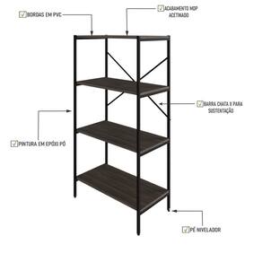 Estante C/04 Prateleiras 118x60x33cm Tub Tueh1164 Nogal - Nogal / Sobre o ProdutoEstante C/04 Prateleiras 118x60x33cm Tub TUEH1164 Branco Chess - Est.PretaDescrição do Produto:A Estante Tub TUEH1164 combina o estilo industrial contemporâneo com funcionalidade. Feita com estrutura tubular de aço com pintura epóxi, garante durabilidade e resistência, enquanto as prateleiras em MDP acetinado com bordas em PVC oferecem maior proteção e fácil manutenção. O design inclui barras chatas em formato X para maior sustentação e estabilidade, além de pés niveladores que asseguram o perfeito ajuste em qualquer superfície. A estante Tub é ideal para organizar e decorar diversos ambientes, como salas, escritórios ou áreas de linha Tub apresenta móveis contemporâneos com um toque de estilo industrial, ideais para sala, home office, cozinha ou área de lazer. Com estrutura em tubos de aço robustos e acabamento em pintura epóxi, cada peça oferece durabilidade e resistência. O MDP Perffect com tecnologia Microban garante proteção contra fungos e bactérias, enquanto as fitas em PVC asseguram um acabamento superior. Essa coleção é a combinação perfeita entre funcionalidade e design moderno para seu Inclusos:1 EstanteDimensões dos Produtos:Estante C/04 Prateleiras 118x60x33cm Tub TUEH1164 Branco Chess - 60 x 33 x 118 cmInformações Logísticas (Comp. X Prof. X Alt.) 118 x 34,5 x 10 cm - Peso: 10,4497 KgPeso Total: 10,4497 KgObservações:Não acompanha acessórios decorativos. Imagens meramente ilustrativas.Informações Técnicas / Características:- Cor do Produto: Branco Chess - Cor do Predominante: Branco- Marca: Compace- Modelo: TUEH1164- Linha: Tub- Material: Mdp- Material da Estrutura / Pés: Aço- Acabamento: Perffect Acetinado- Escala de Brilho: Fosco- Fita de Borda: Pvc - Possui Prateleiras: 4- Peso Máximo por Prateleira: 10kg- Possui Pés: 2- Pés Niveladores: Sim - Acabamento Estrutura: Epóxi-Pó- Formato: Retangular - Suporta Até (kg): 40kg- Comprimento: 60cm- Profundidade: 33cm- Altura: 118cm - Peso Lí.: 9,76Kg- Recomendações de Uso, Manutenção e Limpeza: Para a limpeza, utilize flanela seca ou pano macio levemente umedecido em água. Utilize um pano seco em seguida. Evite com produtos químicos (solventes, thinner, acetona, etc) e não utilize nenhum tipo de esponja de aço.- Necessita de Montagem: Sim / Acompanha Manual de Montagem- Complexidade da Montagem: Média: pode ser montado por mais de uma pessoa e/ou necessite de maior conhecimento para montagem.- Garantia: 6 meses Tipo de Garantia: Garantia do Fabricante | Duração de Garantia: 6 Meses | Montagem: Necessita Montagem | Material: Madeira,Metal | País de Origem: | Comprimento: 60 | Altura: 118 | Largura: 33 | Profundidade: 33 | Tonalidade: Multicolorido | Cor: Multicolorido | Produto: Estante | Marca: Compace | Coleção: Industrial | Requer Baterias: Não | Certificação Externa: Não aplicável | Componentes inclusos: Manual de montagem e kit acessórios | Peso: 9,76 | Preço de tabela: 258.16300000000001 | Fabricante: Compace | do Modelo: TUEH1164 | de Caixas: 1 | de Itens: 1 | da Peça: TUEH1164 | Cômodo indicado: Escritórios | Material da Estrutura: Aço | Quantidade de itens: 1 | Principais Características do Produto 0: Aço | Palavras-chave de Pesquisa: Não Aplicável | Principais Características do Produto 1: MDP | Principais Características do Produto 2: Pvc | Exige montagem: true | Peso do item: unit=kilograms; | Dimensões do item P x L x A: depth#value=33;width#value=60;depth#unit=centimeters;width#unit=centimeters;height#value=118;height#unit=centimeters Cor: Nogal /