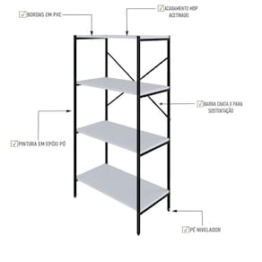 Sobre o ProdutoEstante C/04 Prateleiras 118x60x33cm Tub TUEH1164 Branco Chess - Est.PretaDescrição do Produto:A Estante Tub TUEH1164 combina o estilo industrial contemporâneo com funcionalidade. Feita com estrutura tubular de aço com pintura epóxi, garante durabilidade e resistência, enquanto as prateleiras em MDP acetinado com bordas em PVC oferecem maior proteção e fácil manutenção. O design inclui barras chatas em formato X para maior sustentação e estabilidade, além de pés niveladores que asseguram o perfeito ajuste em qualquer superfície. A estante Tub é ideal para organizar e decorar diversos ambientes, como salas, escritórios ou áreas de lazer.A linha Tub apresenta móveis contemporâneos com um toque de estilo industrial, ideais para sala, home office, cozinha ou área de lazer. Com estrutura em tubos de aço robustos e acabamento em pintura epóxi, cada peça oferece durabilidade e resistência. O MDP Perffect com tecnologia Microban garante proteção contra fungos e bactérias, enquanto as fitas em PVC asseguram um acabamento superior. Essa coleção é a combinação perfeita entre funcionalidade e design moderno para seu ambiente.Itens Inclusos:1 EstanteDimensões dos Produtos:Estante C/04 Prateleiras 118x60x33cm Tub TUEH1164 Branco Chess - Est.Preta: 60 x 33 x 118 cmInformações Logísticas (Comp. X Prof. X Alt.):Vol.01: 118 x 34,5 x 10 cm Peso: 10,4497 KgPeso Total: 10,4497 KgObservações:Não acompanha acessórios decorativos. Imagens meramente ilustrativas.Informações Técnicas / Características: Cor do Produto: Branco Chess - Est.Preta Cor do Predominante: Branco Marca: Compace Modelo: TUEH1164 Linha: Tub Material: Mdp Material da Estrutura / Pés: Aço Acabamento: Perffect Acetinado Escala de Brilho: Fosco Fita de Borda: Pvc Possui Prateleiras: 4 Peso Máximo por Prateleira: 10kg Possui Pés: 2 Pés Niveladores: Sim Acabamento Estrutura: Epóxi-Pó Formato: Retangular Suporta Até (kg): 40kg Comprimento: 60cm Profundidade: 33cm Altura: 118cm Peso Líq.: 9,76Kg Recomendações de Uso, Manutenção e Limpeza: Para a limpeza, utilize flanela seca ou pano macio levemente umedecido em água. Utilize um pano seco em seguida. Evite contato com produtos químicos (solventes, thinner, acetona, etc) e não utilize nenhum tipo de esponja de aço. Necessita de Montagem: Sim / Acompanha Manual de Montagem Complexidade da Montagem: Média: pode ser montado por mais de uma pessoa e/ou necessite de maior conhecimento para montagem. Garantia: 6 meses