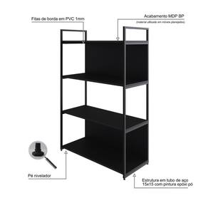 Estante C/04 Prateleiras 118x80x33cm C/fundo Yon Preto Tx/ Preto Tx/ Sobre o ProdutoEstante C/04 Prateleiras 118x80x33cm C/Fundo Yon YOEO1184F çoDescrição do Produto:A estante Yon YOEO1184F combina elegância e funcionalidade, perfeita para ambientes modernos e com estilo. Sua estrutura em tubos de aço com soldas a laser garante robustez e durabilidade, além de um excelente acabamento. Com design de linhas limpas e atemporal, oferece versatilidade para diversos usos, permitindo a criação de composições únicas e personalizadas, perfeita para organizar e exibir objetos decorativos com sofisticação e linha Yon é uma fusão elegante entre o estilo industrial e o contemporâneo. Com linhas limpas, materiais robustos e detalhes sofisticados, essa coleção é perfeita para quem busca um ambiente moderno e funcional. Os móveis desta linha oferecem uma versatilidade notável, adaptando-se a diversos ambientes e necessidades, permitindo a criação de composições únicas e personalizadas. sendo a escolha ideal para quem busca qualidade e estilo em um só Inclusos:1 EstanteDimensões dos Produtos:Estante C/04 Prateleiras 118x80x33cm C/Fundo Yon YOEO1184F ço: 80 x 33 x 118 cmInformações Logísticas (Comp. X Prof. X Alt.) 117,5 x 34,5 x 10 cm - Peso: 13,6937 KgPeso Total: 13,6937 KgObservações:Não acompanha acessórios decorativos. Imagens meramente ilustrativas.Informações Técnicas / Características:- Cor do Produto: ço- Cor do Predominante: Revestido- Marca: Metalig- Modelo: YOEO1184F- Linha: Yon- Material: Mdp- Material da Estrutura / Pés: Aço- Acabamento: BP- Escala de Brilho: Fosco- Fita de Borda: Pvc - Possui Prateleiras: 4- Peso Máximo por Prateleira: 10kg- Possui Pés: 2- Pés Niveladores: Sim - Acabamento Estrutura: Epóxi-Pó- Formato: Retangular - Suporta Até (kg): 40kg- Comprimento: 80cm- Profundidade: 33cm- Altura: 118cm - Peso Lí.: 13,06Kg- Recomendações de Uso, Manutenção e Limpeza: Para a limpeza, utilize flanela seca ou pano macio levemente umedecido em água. Utilize um pano seco em seguida. Evite com produtos químicos (solventes, thinner, acetona, etc) e não utilize nenhum tipo de esponja de aço.- Necessita de Montagem: Sim / Acompanha Manual de Montagem- Complexidade da Montagem: Média: pode ser montado por mais de uma pessoa e/ou necessite de maior conhecimento para montagem.- Garantia: 01 ano Marca: Compace | Modelo: YOEO1184F | Quantidade máxima de pedido: 1 | Necessita montagem: Sim | É em formato de L: Não | Comprimento: 118 cm | Altura: 33 cm | Largura: 80 cm | Profundidade: 80 cm | Material da estrutura: Aço | Produto: Estante | Cômodo indicado: Escritórios | Cor: Multicolorido | Tonalidade: Multicolorido | Coleção: Industrial | Requer Baterias: Não | Certificação Externa: | Componentes inclusos: Manual de montagem e kit acessórios | Preço de tabela: 324.45999999999998 | Fabricante: Compace | do Modelo: YOEO1184F | de Caixas: 1 | de Itens: 1 | da Peça: YOEO1184F | Quantidade de itens: 1 | Principais Características do Produto 0: Aço | Baterias são necessárias?: false | Palavras-chave de Pesquisa: Não Aplicável | Principais Características do Produto 1: MDP | Principais Características do Produto 2: Pvc | Peso do item: unit=kilograms; | Dimensões do item P x L x A: depth#value=33;width#value=80;depth#unit=centimeters;width#unit=centimeters;height#value=118;height#unit=centimeters Cor: Preto TX/