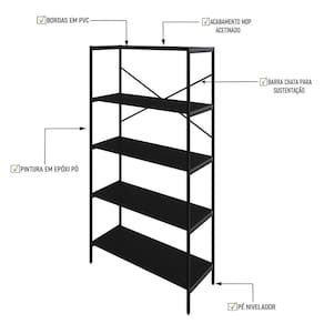 Estante C/05 Prateleiras 152x80x33cm Tub Tueh1585 Preto ônix - Preto ônix / Sobre o ProdutoEstante C/05 Prateleiras 152x80x33cm Tub TUEH1585 Branco Chess - Est.PretaDescrição do Produto:A Estante Tub TUEH1585 combina o estilo industrial contemporâneo com funcionalidade. Feita com estrutura tubular de aço com pintura epóxi, garante durabilidade e resistência, enquanto as prateleiras em MDP acetinado com bordas em PVC oferecem maior proteção e fácil manutenção. O design inclui barras chatas em formato X para maior sustentação e estabilidade, além de pés niveladores que asseguram o perfeito ajuste em qualquer superfície. A estante Tub é ideal para organizar e decorar diversos ambientes, como salas, escritórios ou áreas de linha Tub apresenta móveis contemporâneos com um toque de estilo industrial, ideais para sala, home office, cozinha ou área de lazer. Com estrutura em tubos de aço robustos e acabamento em pintura epóxi, cada peça oferece durabilidade e resistência. O MDP Perffect com tecnologia Microban garante proteção contra fungos e bactérias, enquanto as fitas em PVC asseguram um acabamento superior. Essa coleção é a combinação perfeita entre funcionalidade e design moderno para seu Inclusos:1 EstanteDimensões dos Produtos:Estante C/05 Prateleiras 152x80x33cm Tub TUEH1585 Branco Chess - 80 x 33 x 152 cmInformações Logísticas (Comp. X Prof. X Alt.) 162 x 34,5 x 8,5 cm - Peso: 15,882 KgPeso Total: 15,882 KgObservações:Não acompanha acessórios decorativos. Imagens meramente ilustrativas.Informações Técnicas / Características:- Cor do Produto: Branco Chess - Cor do Predominante: Branco- Marca: Compace- Modelo: TUEH1585- Linha: Tub- Material: Mdp- Material da Estrutura / Pés: Aço- Acabamento: Perffect Acetinado- Escala de Brilho: Fosco- Fita de Borda: Pvc - Possui Prateleiras: 5- Peso Máximo por Prateleira: 10kg- Possui Pés: 2- Pés Niveladores: Sim - Acabamento Estrutura: Epóxi-Pó- Formato: Retangular - Suporta Até (kg): 50kg- Comprimento: 80cm- Profundidade: 33cm- Altura: 152cm - Peso Lí.: 15,01Kg- Recomendações de Uso, Manutenção e Limpeza: Para a limpeza, utilize flanela seca ou pano macio levemente umedecido em água. Utilize um pano seco em seguida. Evite com produtos químicos (solventes, thinner, acetona, etc) e não utilize nenhum tipo de esponja de aço.- Necessita de Montagem: Sim / Acompanha Manual de Montagem- Complexidade da Montagem: Média: pode ser montado por mais de uma pessoa e/ou necessite de maior conhecimento para montagem.- Garantia: 6 meses Tipo de Garantia: Garantia do Fabricante | Duração de Garantia: 6 Meses | Montagem: Necessita Montagem | Material: Madeira,Metal | País de Origem: | Comprimento: 80 | Altura: 152 | Largura: 33 | Profundidade: 33 | Tonalidade: Multicolorido | Cor: Multicolorido | Produto: Estante | Marca: Compace | Coleção: Industrial | Requer Baterias: Não | Certificação Externa: | Componentes inclusos: Manual de montagem e kit acessórios | Peso: 15,01 | Preço de tabela: 367.00400000000002 | Fabricante: Compace | do Modelo: TUEH1585 | de Caixas: 1 | de Itens: 1 | da Peça: TUEH1585 | Cômodo indicado: Escritórios | Material da Estrutura: Aço | Quantidade de itens: 1 | Principais Características do Produto 0: Aço | Baterias são necessárias?: false | Palavras-chave de Pesquisa: Não Aplicável | Principais Características do Produto 1: MDP | Principais Características do Produto 2: Pvc | Exige montagem: true | Peso do item: unit=kilograms; | Dimensões do item P x L x A: depth#value=33;width#value=80;depth#unit=centimeters;width#unit=centimeters;height#value=152;height#unit=centimeters Cor: Preto Ônix /