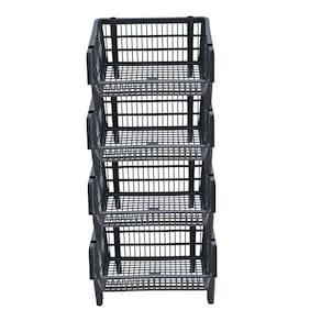 Neste kit, você irá receber 4 unidades de cesto expositor na qual formam a estante da primeira imagem. Aproveite pois com o kit você paga menos e leva mais! Produzida com composto termoplástico de alta qualidade. Ideal para armazenamentos em, sua casa, lojas de departamentos, drogarias, perfumarias, autopeças, comércio, confecções, material de construção e outros. Fabricado em polipoletileno, resiste a mais de 15 Kg por plano. Dimensões externas da unidade: 29 cm x 42 cm x 57,5 cm altura x largura x comprimento Dimensões internas: 22 cm x 38,6 cm x 53,5 cm altura x largura x comprimento Capacidade volumétrica: 55 Litros Capacidade Carga por Cesto: 15 kg, Capacidade Carga por Empilhamento: 90 kg, Peso Unidade: 950 Gramas,