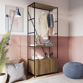 O estilo industrial da estante closet SW018 se inspira nas instalações de fábricas das grandes cidades, uma mistura do rustico com o urbano. Perfeita para decorar e organizar, com designer moderno e dando ainda mais personalidade ao seu espaço. Para um ambiente moderno é necessário escolher móveis arrojados, únicos, que irão impressionar desde o primeiro momento. Acabamento da Porta: BP Acabamento da Prateleira: BP Ambiente Principal: Quarto Complexidade da Montagem: Baixa: pode ser montado por uma pessoa sozinha Composição: 50% Aço e 50% MDP Cor: preto/noce oro Cor do Produto: Preto/Noce Oro Cor Flex: Não Cor Interna: Marrom Escala de Brilho: Fosco Espessura do Material da Estrutura: 15 mm Itens Inclusos: 1 Estante, Kit Ferragens e Manual de Montagem Linha ou Coleção: Steel Wood Manual de Montagem e Instalação: https://cdn2.madeiramadeira.com.br/atributo/placa-e-ponto/979664-7898270100987-manual-montagem-estante-closed-2-portas-sw018.pdf Material da Porta: MDP Material da Prateleira: MDP Material Principal: MDP Módulo Individual: Sim Montagem Flex: Não Necessita Montagem: Sim Origem do Produto: Nacional Peso: 25 kg Peso Máximo por Prateleira: 5 kg Possui Cabideiros: 01 Possui Calceiros: Não Possui Espelho: Não Possui Possui Pés: Não Possui Portas: 02 Possui Prateleiras: 01 Recomendações de Uso, Manutenção e Limpeza: Para a limpeza do móvel utilizar uma flanela seca. Sistema de Montagem: Parafusos e Cavilhas Suporta Até (kg): 25 kg Tipo de Dobradiça/Corrediça da Porta: Metálica Tipo de Puxador da Porta: Não Possui - Abertura por Fecho Toque Marca: Placa e Ponto