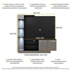 Dimensões do produto montado: Altura: 164 cm - Largura: 165 cm - Profundidade: 32,5 cm Tamanho Painel TV: 133,5 x 100cm *Devido as variações de tamanho dos televisores no mercado, sugerimos que verifique as medidas da sua TV e compare com o painel antes de efetuar a compra. *Você pode consultar as medidas internas na imagem técnica do produto.