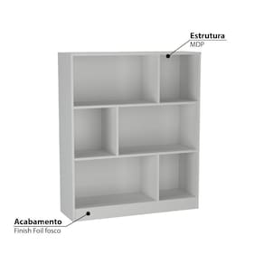 Imagina seu escritório ou sua sala organizada, onde todos os livros tenham o seu lugar específico e que ainda, enfeitam o ambiente. Esse é um desejo que pode ser realizado, com a Estante da Nova Mobile, uma peça imponente, bela, de estrutura perfeita para espaços compacto. Sua funcionalidade atende diferentes ambientes e objetivos, seja na sala de estar, no home office, escritório, clínica e até em loja, pois conta com 6 nichos para você organizar o que quiser. O acabamento é de excelente qualidade, possibilitando durabilidade do produto.
