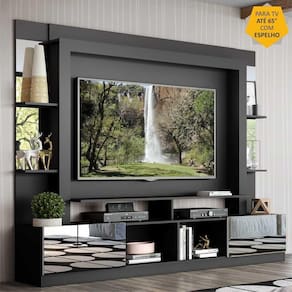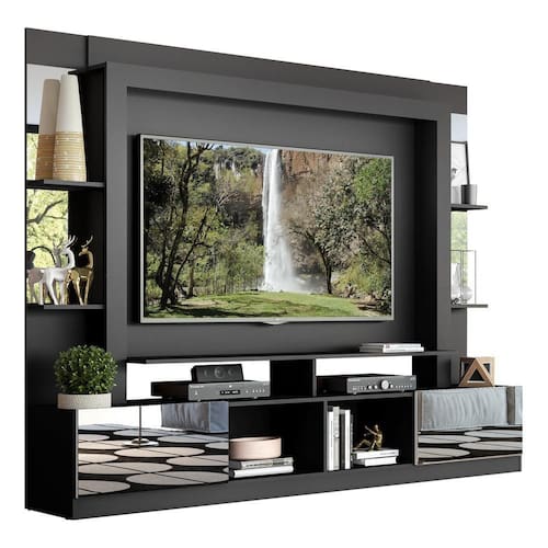 Estante com Espelho para TV até 65" Multimóveis Oslo FG3389 Preta/Branca - Preto