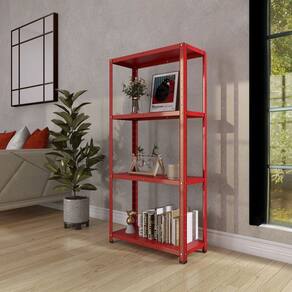 Uma estante com estrutura de aço é uma opção moderna e durável para organizar seus pertences. O aço confere resistência e estabilidade, tornando-a ideal para armazenar livros, objetos decorativos, materiais de escritório e muito mais. Além disso, a estética do aço pode dar um toque contemporâneo ao ambiente. A versatilidade desse material permite que a estante se encaixe em diversos estilos de decoração, do industrial ao minimalista. Acabamento da Prateleira: Pintura Complexidade da Montagem: Baixa: pode ser montado por uma pessoa sozinha Cor: Vermelho Cor do Produto: Vermelho Cor Interna: Vermelho Escala de Brilho: Semi-Fosco Escala de Brilho da Prateleira: Semi-Fosco Itens Inclusos: uma estante Manual de Montagem e Instalação: https://product-hub-prd.madeiramadeira.com.br/901806/documents/6a7da61b-c3c1-4502-975e-124d0f91a08d445Estante2020Linha20Light.pdf Material da Prateleira: Aço Material dos Pés: Polipropileno Material Principal: Aço Necessita Montagem: Sim Origem do Produto: Nacional Peso: 6,0563 kg Peso Máximo por Prateleira: 15 kg Possui Espelho: Não Possui Possui iluminação: Não Possui Pés: 04 Possui Portas: Não Possui Prateleiras: 04 Possui Rodízio: Não Recomendações de Uso, Manutenção e Limpeza: Limpeza deve ser feita com um pano levemente umedecido e um pano seco. Sapatas Niveladoras: Não Sistema de Montagem: Parafuso Suporta Até (kg): 15 kg