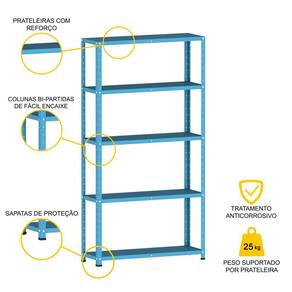 ESTANTE DE AÇO 175X92X30 5 PRAT. C/ REFORÇO PANDIN - AZUL DALÍ