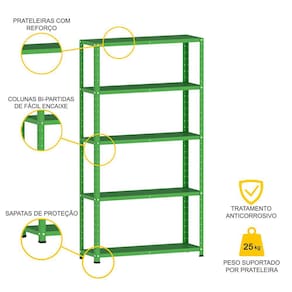 ESTANTE DE AÇO 175X92X30 5 PRAT. C/ REFORÇO PANDIN - VERDE