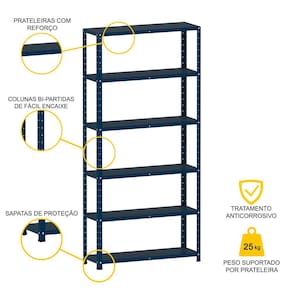 ESTANTE DE AÇO 175X92X30 6 PRAT. C/ REFORÇO PANDIN - AZUL DEL REY