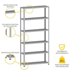 ESTANTE DE AÇO 175X92X30 6 PRAT. C/ REFORÇO PANDIN - CINZA
