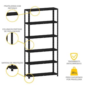 ESTANTE DE AÇO 195X92X30 6 PRAT. C/ REFORÇO PANDIN - PRETO