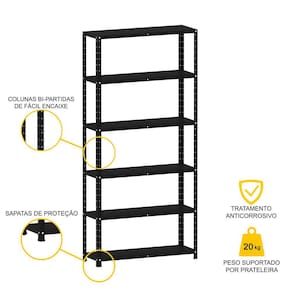 ESTANTE DE AÇO 195X92X30 6 PRAT. PANDIN - PRETO