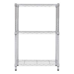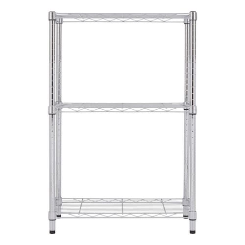 Em resumo, a Estante Utilitaria da Spaceo e uma solucao de armazenamento robusta e elegante, feita de aco cromado, com tres prateleiras que suportam ate 50 kg cada. Ela nao possui gavetas, portas, rodas ou pes, o que a torna versatil para uso em diferentes ambientes. A estante vem desmontada, e facil de montar, e tem uma garantia de 60 meses do fabricante.