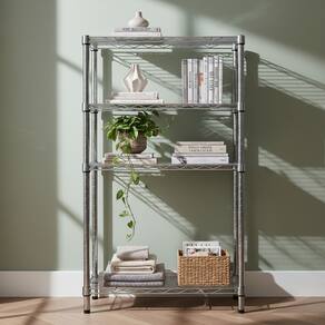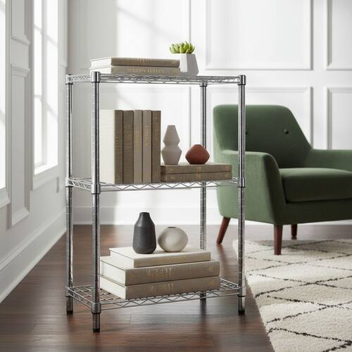 "Maximize o seu espaco com a Estante de Aco Cromado 3 Prateleiras da Spaceo. Com um design moderno e sofisticado, esta estante utilitaria apresenta uma tonalidade prateada que adiciona um toque de elegancia a qualquer ambiente. Fabricada em aco de alta qualidade, ela possui dimensoes de 90x60x35 cm, perfeita para acomodar uma variedade de itens, desde livros a utensilios de cozinha, ferramentas e muito mais.
